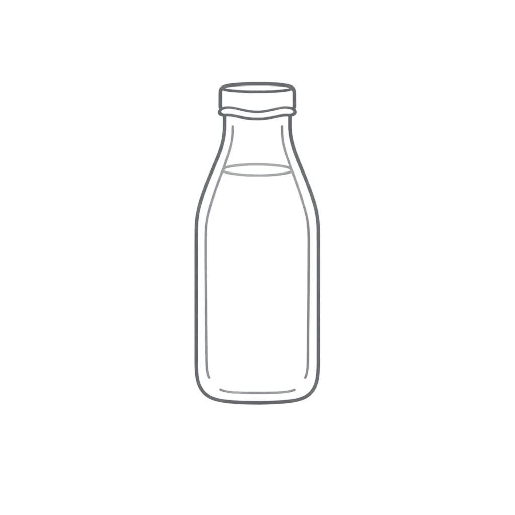 1/2 liter of pure pasteurized cow milk in glass bottle.